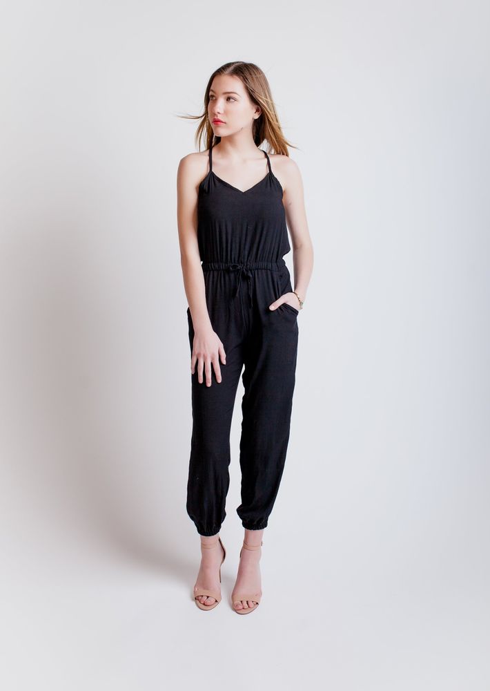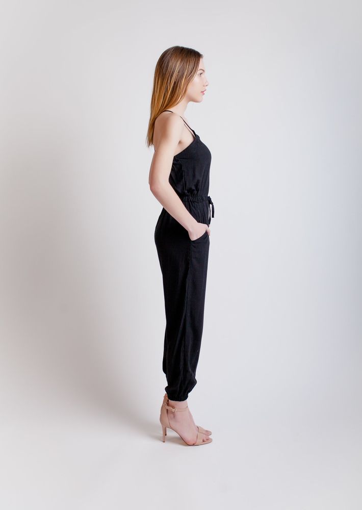Our Juliette Jumpsuit in black is an essential piece for everyday wear whether it be at home, a day out on the town or packed in your suitcase as a must-have travel item. It has a relaxed fit that includes side pockets, adjustable straps, and a drawstring waistband. This is a piece that transitions flawlessly from day to night.
