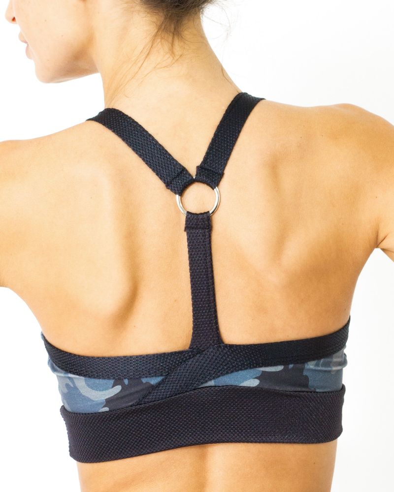 Women's Stylish High Neck Sports Bra - Grey Camouflage