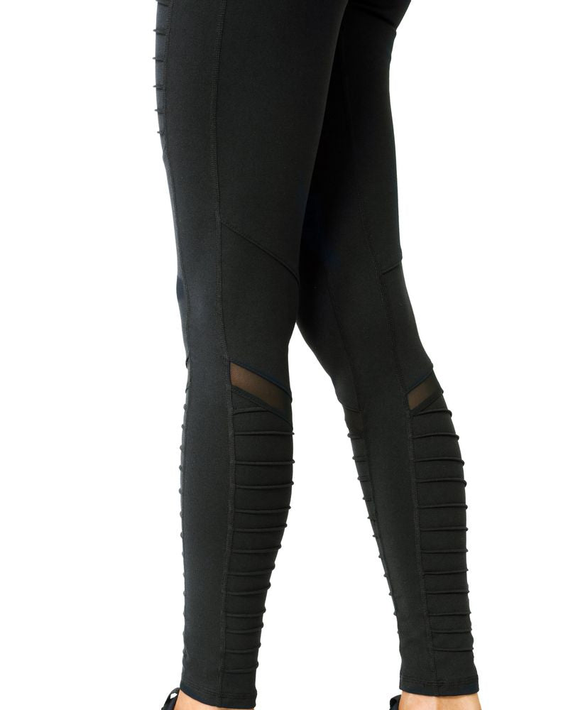 Athletique Low-Waisted Ribbed Leggings With Hidden Pocket and Mesh Panels - Black