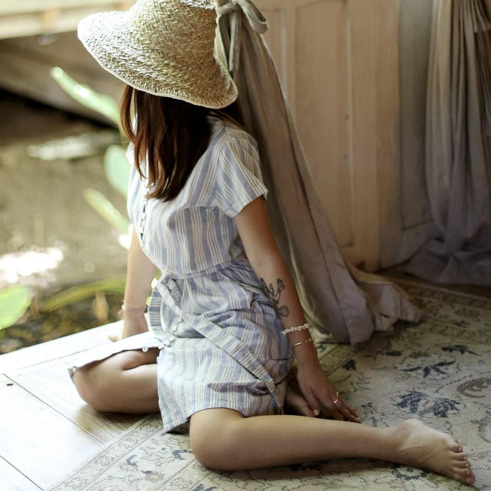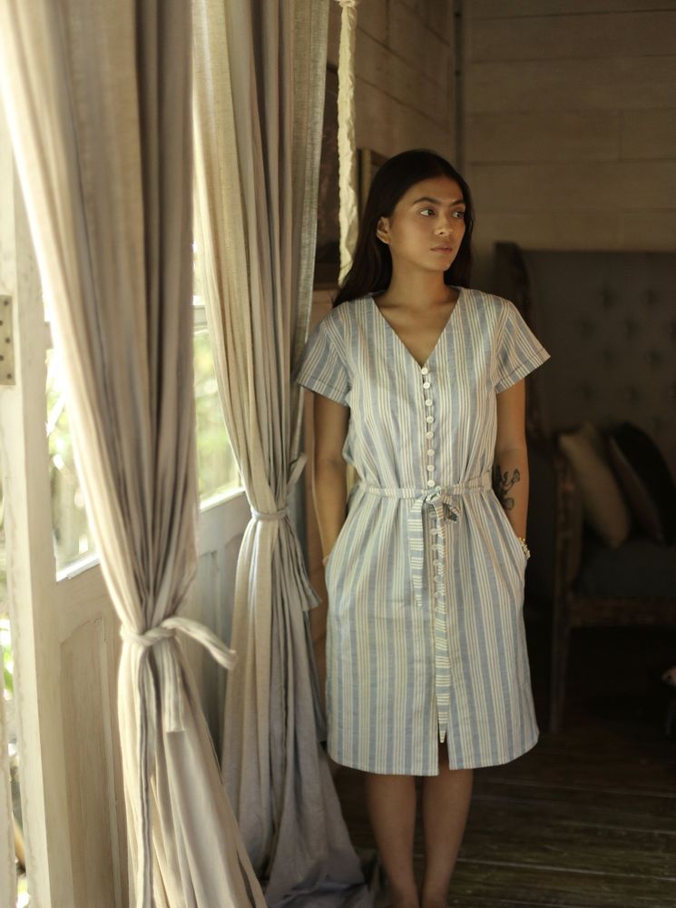 It's a beautiful day out there, why stay? Step out and feel your most comfortable with this natural, soft JUNA knot shitdress. Made from the finest Indonesian natural cotton, handwoven with love by artisans in Java who have done this technique for ages using their traditional wooden weaving tool which has surpasses generations.